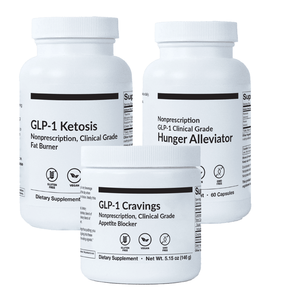 This three-phase regimen includes Ketosis Fat Burner, Cravings Appetite Blocker and Hunger Alleviator working together to burn fat, control appetite and increase energy resulting in rapid and continuous weight loss. This Toolkit is so powerful as an appetite suppressant that just one of its active ingredients in a published 10-week double-blind randomized controlled clinical study produced a 28.1 lb. weight loss and average 6.7” off waistlines compared to a 21 lb. loss from the popular GLP-1 prescription injections!